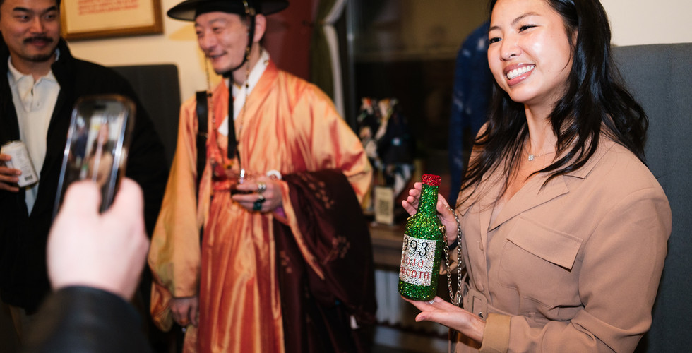 Those culinary offerings were extensive and deliberately composed. EunHaSoo Catering anchored the Korean food program with kimbap, japchae, jeon, and bulgogi ; dishes that represent the breadth and sophistication of a culinary tradition too often reduced to a handful of familiar exports. KJUN introduced an element of playful cultural dialogue with cornbread and bananas foster, a pairing that complemented rather than competed with the evening's Korean culinary core. Goshen Foods presented a range of kimchi, Haneul Babsang contributed soondae, and the beverage selection reflected both heritage and innovation: soju and Terra Beer sat alongside HiteJinro's new canned seltzer, while SWRL introduced what it describes as the first makgeolli seltzer, and SOOL brought multiple flavors of Makku makgeolli to round out the offering.
